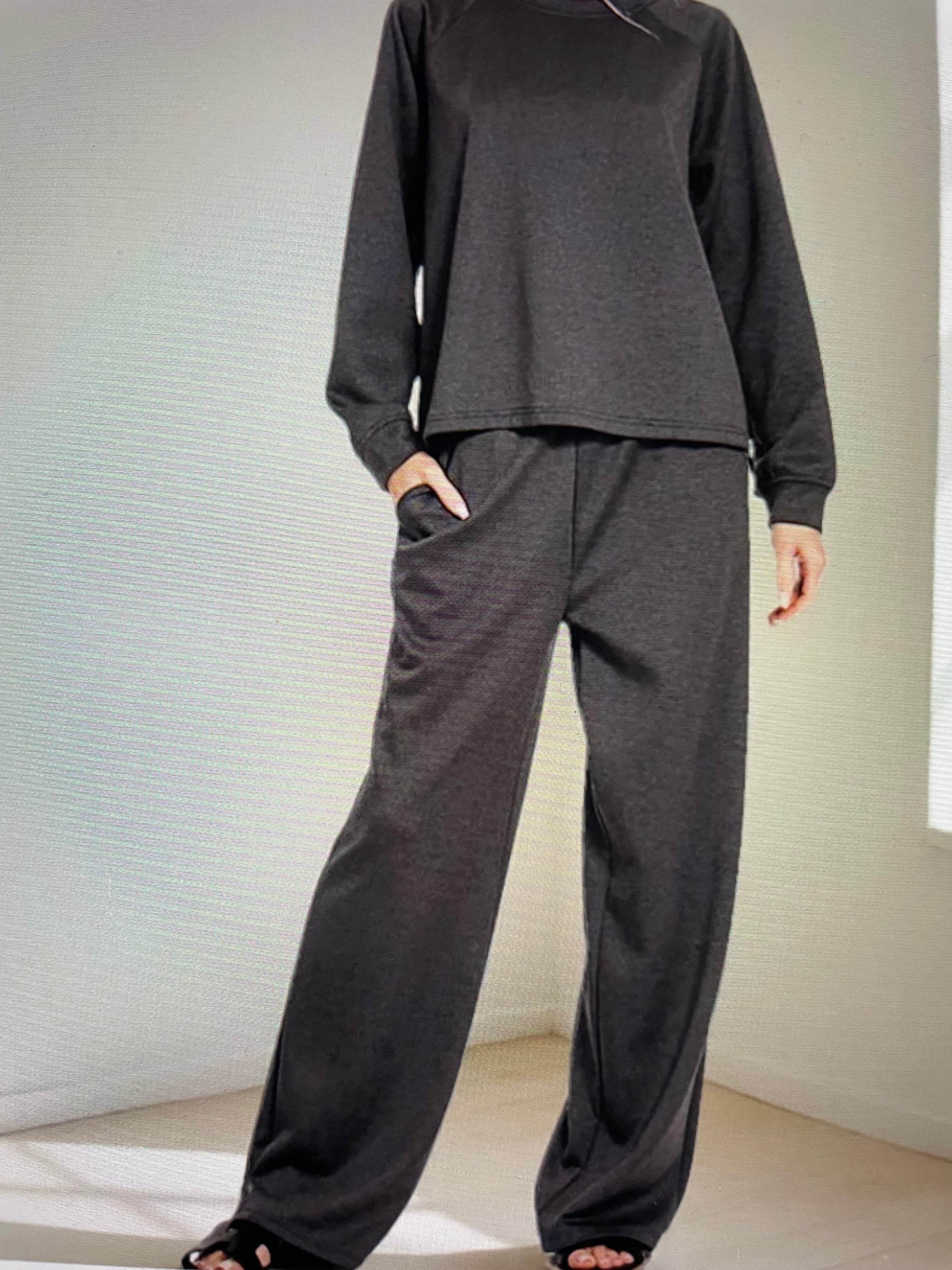 Scuba Crewneck Pullover & Pants 2 Piece Set (BLACK)