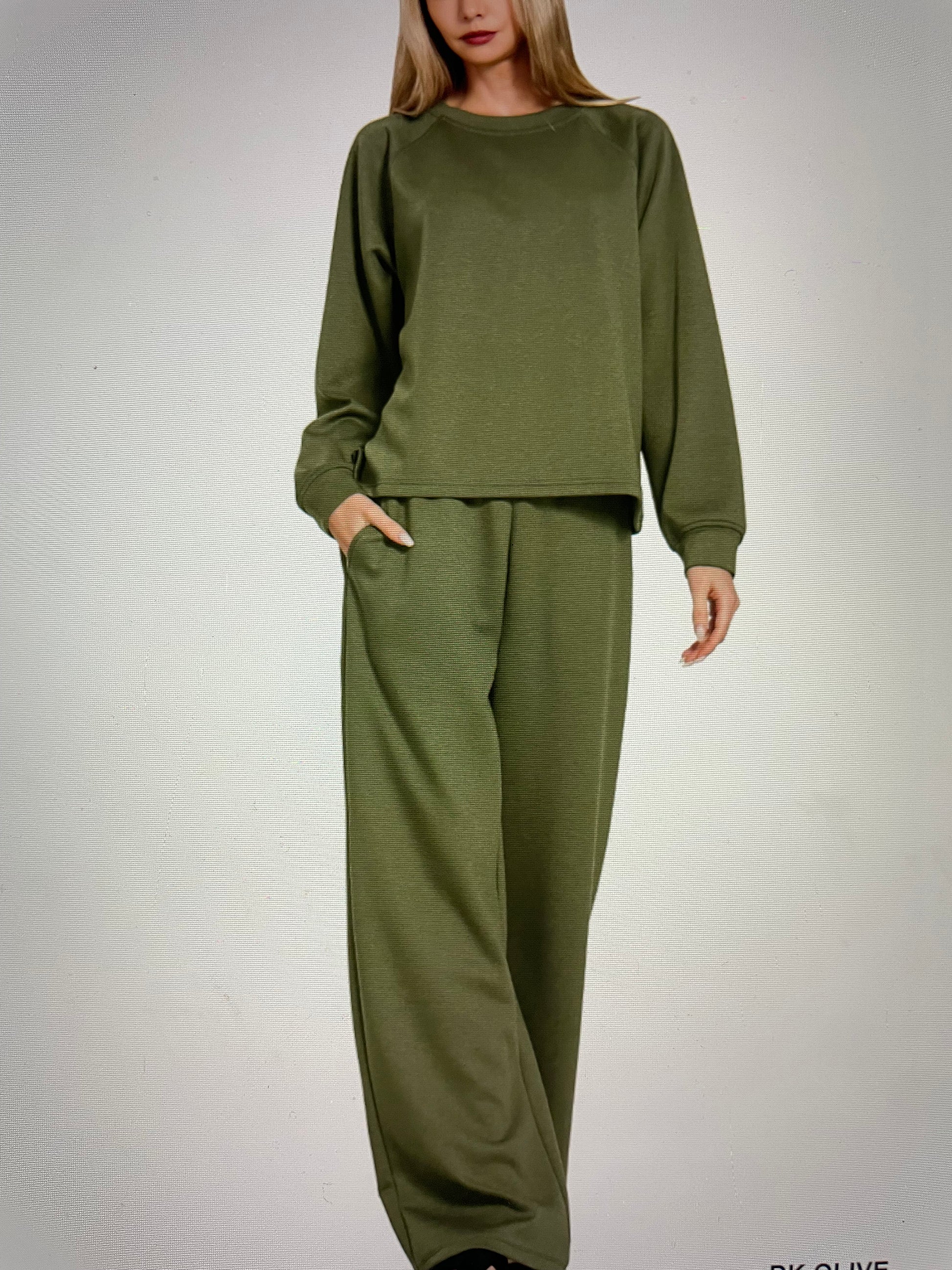 Scuba Crewneck Pullover & Pants 2 Piece Set (OLIVE)